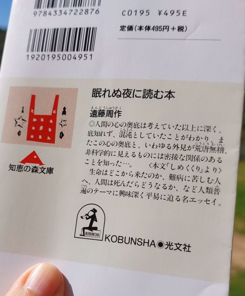 🔽🔽 読書記録 🔽🔽 はい、外出時には持ち出さず、バカ正直にベッドの上で寝る前だけに読みました。 狐狸庵先生のエッセイとは違う真面目に真面目なことが書いてあったり、かと思えば狐狸庵風な視点もちゃんとあって。 こういうふうに日々思ってること、考えていることをアウトプットしてしかもそれが面白い。 全体的に超自然な事に興味を持っているそうで、そういういわゆる「偶然」と一言で片付けられることについて真剣に興味を持っているみたい。 好奇心の塊の遠藤周作氏、こういう方々の文章はやっぱり面白い。
